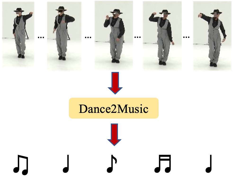 Dance and music typically go hand in hand. The complexities in dance, music, and their synchronisation make them fascinating to study from a computational creativity perspective. While several works have looked at generating dance for a given music, automatically generating music for a given dance remains under-explored. This capability could have several creative expression and entertainment applications. We present some early explorations in this direction. We present a search-based offline approach that generates music after processing the entire dance video and an online approach that uses a deep neural network to generate music on-the-fly as the video proceeds. We compare these approaches to a strong heuristic baseline via human studies and present our findings. We have integrated our online approach in a live demo! A video of the demo can be found here: https://sites.google.com/view/dance2music/live-demo.