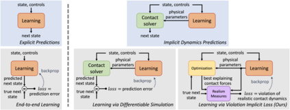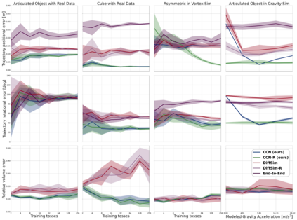 Robotic manipulation can greatly benefit from the data efficiency, robustness, and predictability of model-based methods if robots can quickly generate models of novel objects they encounter. This is especially difficult when effects like complex joint friction lack clear first-principles models and are usually ignored by physics simulators. Further, numerically-stiff contact dynamics can make common model-building approaches struggle. We propose a method to simultaneously learn contact and continuous dynamics of a novel, possibly multi-link object by observing its motion through contact-rich trajectories. We formulate a system identification process with a loss that infers unmeasured contact forces, penalizing their violation of physical constraints and laws of motion given current model parameters. Our loss is unlike prediction-based losses used in differentiable simulation. Using a new dataset of real articulated object trajectories and an existing cube toss dataset, our method outperforms differentiable simulation and end-to-end alternatives with more data efficiency. See our project page for code, datasets, and media: https://sites.google.com/view/continuous-contact-nets/home