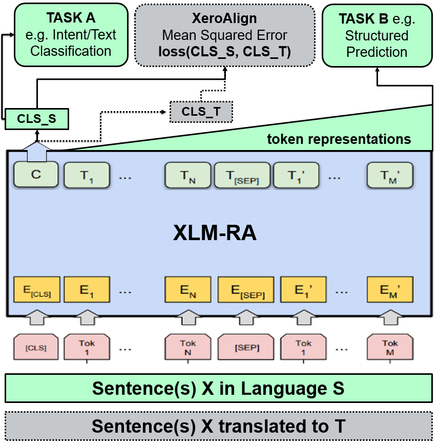 翻译:采用经过预先培训的跨语言语言模式对多语言国家语言方案的任务作出了决定性的改进,然而,由于缺少贴标签的任务数据,必须采用各种方法缩小与高资源语言之间的差距。特别是零点方法,常常使用翻译的任务数据作为培训信号,以弥合源和目标语言之间的性能差距。我们引入了XeroAlign,这是一个简单的方法,用于对诸如XLM-R. XeroAlign等跨语言的、经过培训的、经过培训的、经过培训的跨语言的、经过培训的、经过培训的、经过培训的、经过翻译的变压器进行任务调整,以鼓励该模型为不同语言生成类似的句子嵌入。 Xero Along XLM-R,称为XLM-RA,显示在基线模型上有很大改进,以便在三种多种语言的自然语言理解任务中取得最新零点结果。XLM-RA的文本分类精确度超过了经过贴标签数据培训的XLM-R,并在跨语言对抗性参数参数方面与最新模型进行同等的演练。