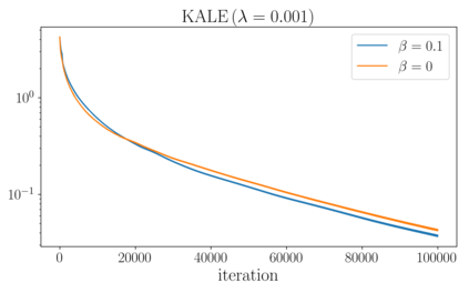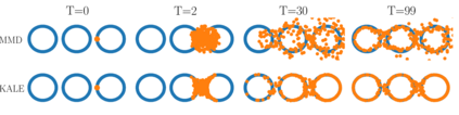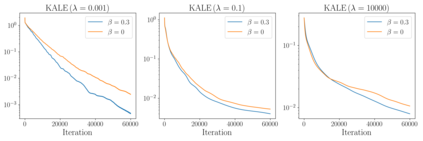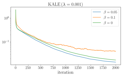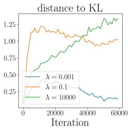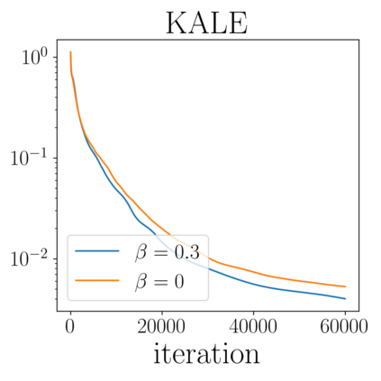 翻译:我们研究梯度流,以轻松接近移动源和固定目标分布之间的 Kullack- Leiber (KL) 移动源和固定目标分布之间的差值。 这个近值, 称为 KALE (KL 近似下下限估计值), 解决了Fenchel 双重问题的常规版本, 定义了功能等级的 KL。 当使用复制的 Kernel Hilbert 空间( RKHS) 来定义函数等级时, 我们显示 KALE 持续在 KLE 和 最大偏差( MMD) 之间进行交叉。 和 MMMD 和其他 综合概率分布模型一样, KALE 仍然被很好地定义为相异分布 。 尽管如此, KALE 相对于 MMD 来说, KLE, KLE 会继承限制 KLE 的对支持分布支持不匹配的敏感度。 这两个属性使得 KALE 梯度流在目标分布在低维方时特别适合。 在假设 KLE 轨迹足够平稳的情况下, 我们展示 KALE 流的全球趋同 。 我们提议从源和目标分布如何验证。