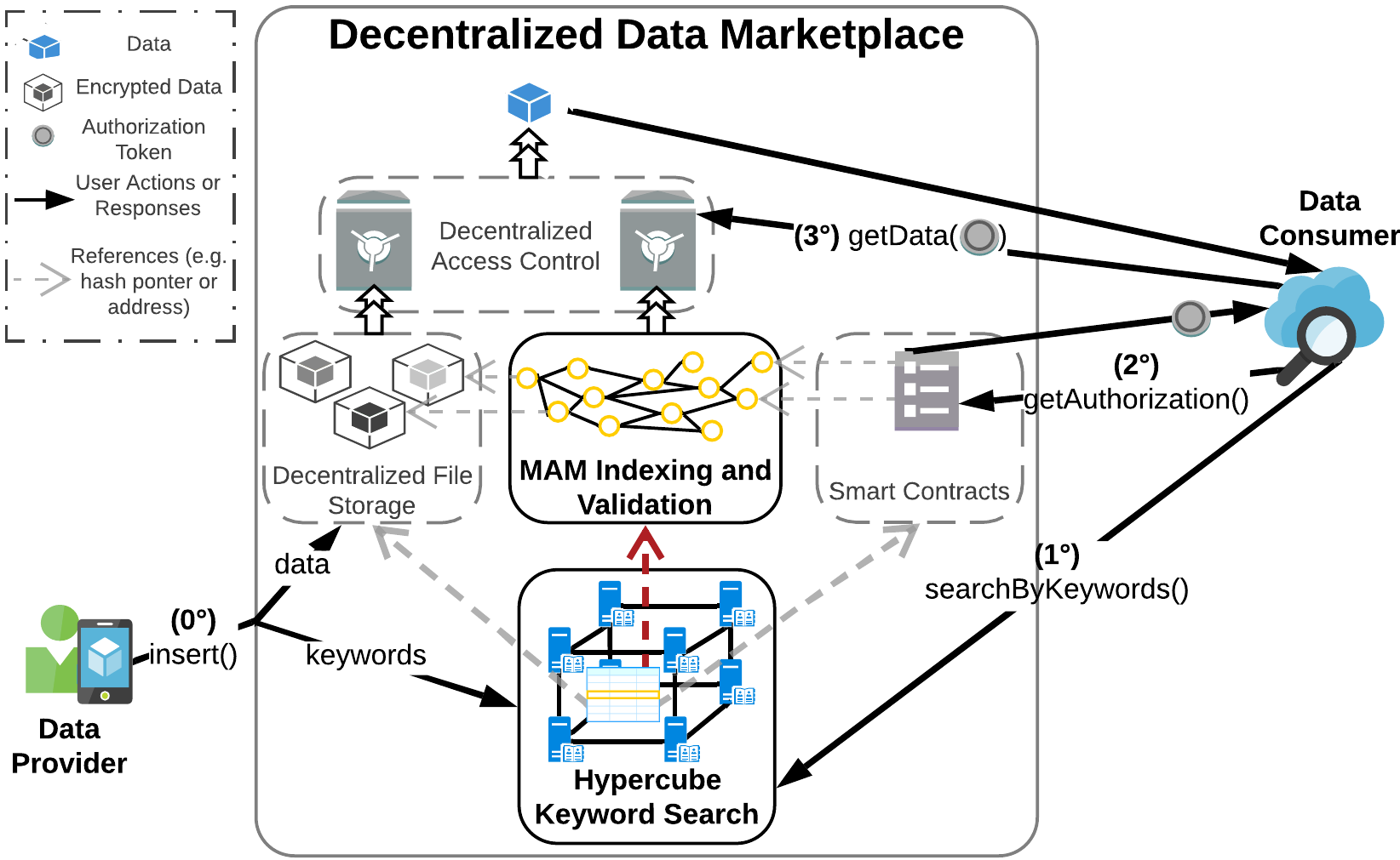 翻译:分散式存储器(DLT)和分散式存储器(DFS)正在越来越多地被用来创建共同、分散和无信任的基础设施,参与者在这种基础设施中互动和协作进行同侪互动;一个突出的使用案例是分散式数据市场,用户是消费者和供应商,同时需要无信任的互动;然而,DLT和DFS中的数据通常没有结构,没有有效的机制查询某类数据用于市场搜索;在本文件中,我们提议使用分散式散货表(DHT)作为DLT上层,一旦获得数据并存储在分类账中,就可以通过基于多个关键词的查询进行搜索,这要归功于DHT提供的外观功能。 DHT网络是一个超立管覆盖结构,为高效处理基于多个关键词的查询而组织起来。我们为分散式数据市场提供了这种解决方案的架构,并在模拟的基础上进行分析,证明拟议方法的可行性。