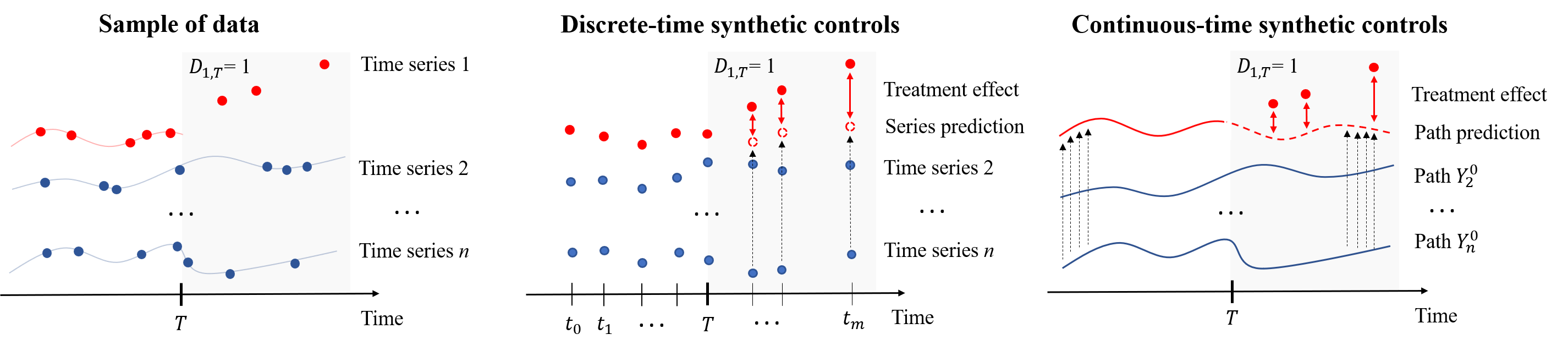 翻译:使用合成控制进行反事实估计是最近在因果推断方面最成功的方法发展之一。尽管目前的说明很受欢迎,但只考虑单位和合成控制之间的时间序列对齐,合成控制只表现为观察到的控制单位的线性组合。我们提出了一个连续时间选择,即利用受控差异方程式明确模拟潜在的反事实路径。这一模式直接适用于不规则的多变量时间序列的一般设置,可以在丰富功能空间中优化,从而改进现有方法的某些局限性。