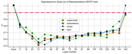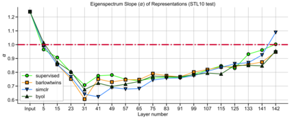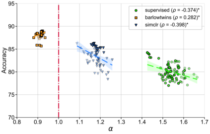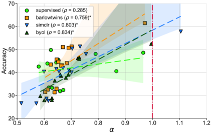 翻译:代表制学习能够利用大规模贴标签数据集,这是最近机器学习进展的核心。 获取规模上的任务相关标签往往稀缺或昂贵,促使人们需要通过自我监督学习(SSL)从未贴标签的数据集中学习。 如此庞大的未贴标签的数据集(配有数据扩增)往往能很好地覆盖基本输入分布。 然而,评价SSL算法所学的表述仍然需要培训管道中特定任务标签样本。 此外,任务特定编码的普及往往敏感于潜在的分配变化。在理论机器学习和视觉神经科学的最新进展的启发下,我们观察到经验性特征共变异矩阵的eigenspecrence常常遵循权力法。 对于视觉表达,我们估计权力法的系数为$alpha,这三大关键属性影响着代表学习:学习目标(超高、SimCLRR、Barlow Twins和BYOL)、网络结构(VGG、ResNet和VVV变异化器)以及任务(定位和场面识别)。我们观察到,在不温的条件下, 美元的标签结构中,美元比值值值比值比值更强的正标值比值比值比值比值比值为1期间,一个高的数据比值比值值值值值值值比值比值比值比值比值值值值值值值值值值值值值值值比值比值比值比值比值值值值值值值值值值值值值是一个高。
