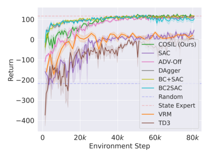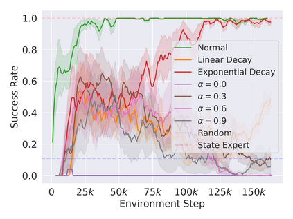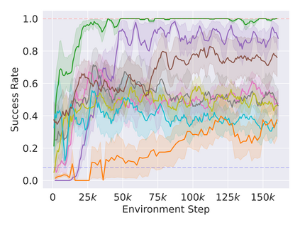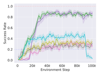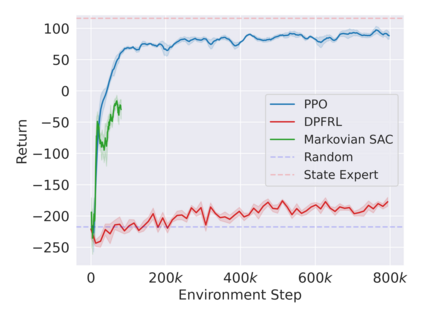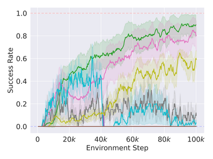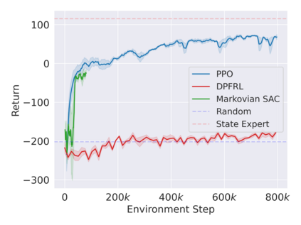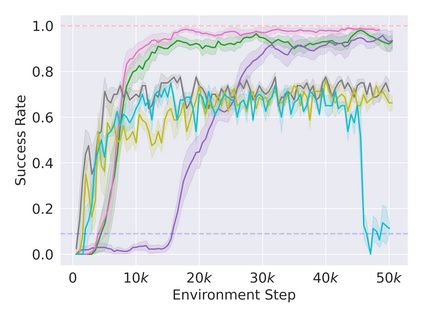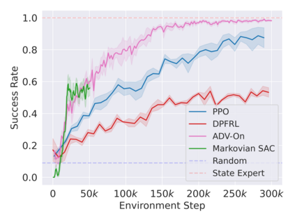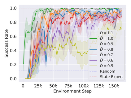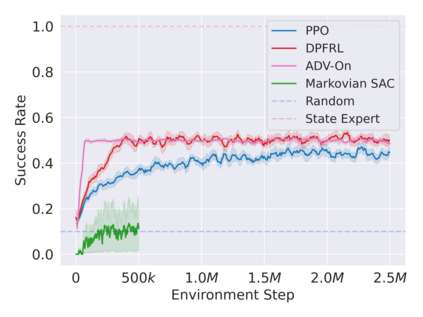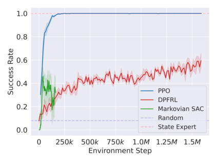 翻译:由于缺乏可见状态信息,在部分可观测的领域中强化学习具有挑战性。 值得庆幸的是,在模拟器中以这种状态信息进行离线学习往往是可能的。 特别是,我们提出了一种在离线培训中使用完全可见的政策(我们称之为州专家)来提高在线绩效的半可见强化学习方法。 基于软动作- critic (SAC), 我们的代理方平衡了与州专家相似的行动和在部分可观测性下获得高回报。 我们的方法可以利用完全可观测的勘探政策和部分领域完全可观测但仍在部分可观测条件下学习的部分内容。 在六个机器人领域,我们的方法超越了纯仿造、纯强化学习、两种类型相继或平行的组合,以及在同一环境中的一种最新的最新状态方法。 从像素中成功地将政策转移到一个操作任务中的物理机器人,表明了我们的方法在学习部分可观测性政策方面的实际意义。
