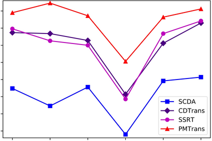 翻译:最近,人们开始利用视觉Transformer(ViT)来解决具有挑战性的无监督领域适应(UDA)任务。这些方法通常在ViT中采用交叉注意力以进行直接的域对齐。然而,由于交叉注意力的性能高度依赖于针对样本的伪标签的质量,因此当域差距变大时,它变得不太有效。我们从博弈论的角度解决了这个问题,提出了一种名为PMTrans的模型,将源域和目标域与中间域联系起来。具体而言,我们提出了一种基于ViT的新型模块PatchMix,通过学习基于博弈论模型从两个领域中采样补丁,有效地建立了中间域,即概率分布。这样,它学习将源域和目标域的补丁混合以最大化交叉熵(CE),同时利用特征空间和标签空间中的两种半监督mixup损失来最小化它们。因此,我们认为通过将UDA过程解释为具有三名玩家(特征提取器、分类器和PatchMix)的最小最大CE博弈来寻找纳什均衡。此外,我们利用ViT的注意力图重新加权每个补丁的标签,以其重要性为标准,从而使其可能获得更具区分性的特征表示。我们在四个基准数据集上进行了大量实验,结果表明,PMTrans在Office-Home、Office-31和DomainNet上分别比基于ViT和基于CNN的SoTA方法高出+3.6%、+1.4%和+17.7%。