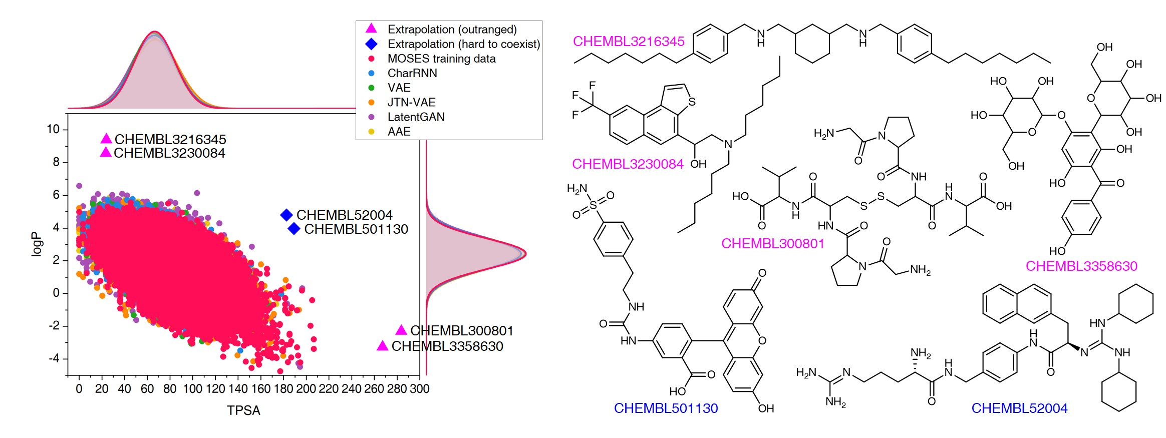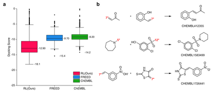 翻译:大多数材料探索的目标是发现比当前已知材料更优越的材料。从根本上讲,这接近于外推,然而对于大多数机器学习模型来说,学习数据的概率分布是其薄弱点。本文开发了一种基于规则的反向分子设计AI 带动的组合化学,该模型不依赖于数据。由于我们的模型潜在地可以生成全部可能的分子结构,这些结构是由分子片段的组合得到的,并因此我们可以发现具有优越性能的未知材料。我们理论上和经验上证明,与概率分布学习模型相比,我们的模型更适合于发现更好的材料。在一个旨在发现七个目标性质的分子中,我们的模型在 10 万次试验中发现了 1,315 个目标分子和 7,629 个五个目标分子,而概率分布学习模型失败了。为了说明实际问题的性能,我们还证明了我们的模型在两个实际应用程序中的工作效果:发现蛋白质对接材料和 HIV 抑制剂。