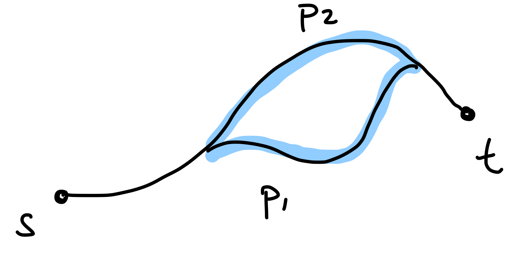 We show that the shortest $s$-$t$ path problem has the overlap-gap property in (i) sparse $\mathbf{G}(n,p)$ graphs and (ii) complete graphs with i.i.d. Exponential edge weights. Furthermore, we demonstrate that in sparse $\mathbf{G}(n,p)$ graphs, shortest path is solved by $O(\log n)$-degree polynomial estimators, and a uniform approximate shortest path can be sampled in polynomial time. This constitutes the first example in which the overlap-gap property is not predictive of algorithmic intractability for a (non-algebraic) average-case optimization problem.