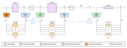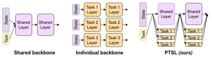 Multi-task reinforcement learning could enable robots to scale across a wide variety of manipulation tasks in homes and workplaces. However, generalizing from one task to another and mitigating negative task interference still remains a challenge. Addressing this challenge by successfully sharing information across tasks will depend on how well the structure underlying the tasks is captured. In this work, we introduce our new architecture, Projected Task-Specific Layers (PTSL), that leverages a common policy with dense task-specific corrections through task-specific layers to better express shared and variable task information. We then show that our model outperforms the state of the art on the MT10 and MT50 benchmarks of Meta-World consisting of 10 and 50 goal-conditioned tasks for a Sawyer arm.