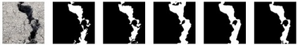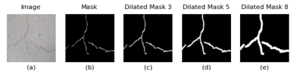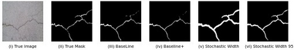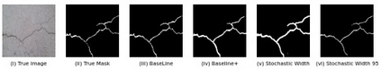 Automatically detecting or segmenting cracks in images can help in reducing the cost of maintenance or operations. Detecting, measuring and quantifying cracks for distress analysis in challenging background scenarios is a difficult task as there is no clear boundary that separates cracks from the background. Developed algorithms should handle the inherent challenges associated with data. Some of the perceptually noted challenges are color, intensity, depth, blur, motion-blur, orientation, different region of interest (ROI) for the defect, scale, illumination, complex and challenging background, etc. These variations occur across (crack inter class) and within images (crack intra-class variabilities). Overall, there is significant background (inter) and foreground (intra-class) variability. In this work, we have attempted to reduce the effect of these variations in challenging background scenarios. We have proposed a stochastic width (SW) approach to reduce the effect of these variations. Our proposed approach improves detectability and significantly reduces false positives and negatives. We have measured the performance of our algorithm objectively in terms of mean IoU, false positives and negatives and subjectively in terms of perceptual quality.