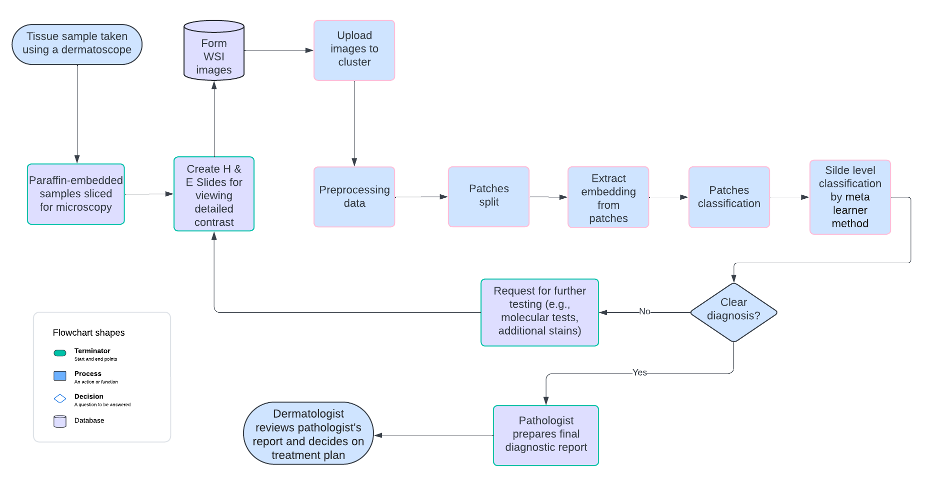 The rapid generation of whole-slide images (WSIs) in dermatopathology necessitates automated methods for efficient processing and accurate classification. This study evaluates the performance of two foundation models, UNI and Virchow2, as feature extractors for classifying WSIs into three diagnostic categories: melanocytic, basaloid, and squamous lesions. Patch-level embeddings were aggregated into slide-level features using a mean-aggregation strategy and subsequently used to train multiple machine learning classifiers, including logistic regression, gradient-boosted trees, and random forest models. Performance was assessed using precision, recall, true positive rate, false positive rate, and the area under the receiver operating characteristic curve (AUROC) on the test set. Results demonstrate that patch-level features extracted using Virchow2 outperformed those extracted via UNI across most slide-level classifiers, with logistic regression achieving the highest accuracy (90%) for Virchow2, though the difference was not statistically significant. The study also explored data augmentation techniques and image normalization to enhance model robustness and generalizability. The mean-aggregation approach provided reliable slide-level feature representations. All experimental results and metrics were tracked and visualized using WandB.ai, facilitating reproducibility and interpretability. This research highlights the potential of foundation models for automated WSI classification, providing a scalable and effective approach for dermatopathological diagnosis while paving the way for future advancements in slide-level representation learning.