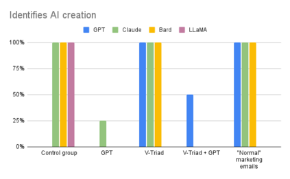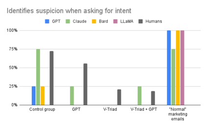 AI programs, built using large language models, make it possible to automatically create phishing emails based on a few data points about a user. They stand in contrast to traditional phishing emails that hackers manually design using general rules gleaned from experience. The V-Triad is an advanced set of rules for manually designing phishing emails to exploit our cognitive heuristics and biases. In this study, we compare the performance of phishing emails created automatically by GPT-4 and manually using the V-Triad. We also combine GPT-4 with the V-Triad to assess their combined potential. A fourth group, exposed to generic phishing emails, was our control group. We utilized a factorial approach, sending emails to 112 randomly selected participants recruited for the study. The control group emails received a click-through rate between 19-28%, the GPT-generated emails 30-44%, emails generated by the V-Triad 69-79%, and emails generated by GPT and the V-Triad 43-81%. Each participant was asked to explain for why they pressed or did not press a link in the email. These answers often contradict each other, highlighting the need for personalized content. The cues that make one person avoid phishing emails make another person fall for them. Next, we used four popular large language models (GPT, Claude, PaLM, and LLaMA) to detect the intention of phishing emails and compare the results to human detection. The language models demonstrated a strong ability to detect malicious intent, even in non-obvious phishing emails. They sometimes surpassed human detection, although often being slightly less accurate than humans.
