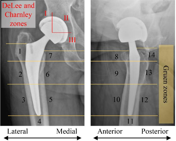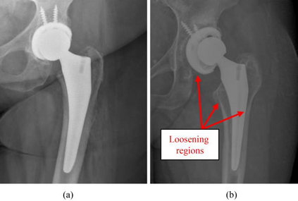 Plain radiography is widely used to detect mechanical loosening of total hip replacement (THR) implants. Currently, radiographs are assessed manually by medical professionals, which may be prone to poor inter and intra observer reliability and low accuracy. Furthermore, manual detection of mechanical loosening of THR implants requires experienced clinicians who might not always be readily available, potentially resulting in delayed diagnosis. In this study, we present a novel, fully automatic and interpretable approach to detect mechanical loosening of THR implants from plain radiographs using deep convolutional neural network (CNN). We trained a CNN on 40 patients anteroposterior hip x rays using five fold cross validation and compared its performance with a high volume board certified orthopaedic surgeon (AFC). To increase the confidence in the machine outcome, we also implemented saliency maps to visualize where the CNN looked at to make a diagnosis. CNN outperformed the orthopaedic surgeon in diagnosing mechanical loosening of THR implants achieving significantly higher sensitively (0.94) than the orthopaedic surgeon (0.53) with the same specificity (0.96). The saliency maps showed that the CNN looked at clinically relevant features to make a diagnosis. Such CNNs can be used for automatic radiologic assessment of mechanical loosening of THR implants to supplement the practitioners decision making process, increasing their diagnostic accuracy, and freeing them to engage in more patient centric care.