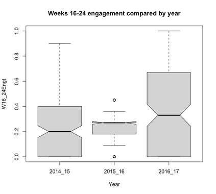 Many studies in educational data mining address specific learner groups, such as first-in-family to attend Higher Education, or focus on differences in characteristics such as gender or ethnicity, with the aim of predicting performance and designing interventions to improve outcomes. For Higher Education, this is reflected in significant interest in institutional-level analysis of student cohorts and in tools being promoted to Higher Education Institutions to support collection, integration and analysis of data. For those leading modules/units on degree programmes, however, the reality can be far removed from the seemingly well-supported and increasingly sophisticated approaches advocated in centrally-led data analysis. Module leaders often find themselves working with a number of student-data systems that are not integrated, may contain conflicting data and where significant effort is required to extract, clean and meaningfully analyse the data. This paper suggests that important lessons may be learned from experiences at module level in this context and from subsequent analysis of related data collected across multiple years. The changes made each year are described and a range of data analysis methods are applied, post hoc, to identify findings in relation to the four areas of focus. The key findings are that non-engagement with the Virtual Learning Environment in the first three weeks was the strongest predictor of failure and that early engagement correlated most strongly with final grade. General recommendations are drawn from the findings which should be valuable to module leaders in environments where access to integrated, up-to-date student information remains a day-to-day challenge, and insights will be presented into how such bottom-up activities might inform institutional/top-down planning in the use of relevant technologies.