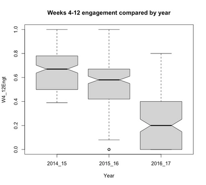翻译:教育数据采矿的许多研究都针对特定学习者群体,如参加高等教育的一到家先到家,或侧重于性别或族裔等特征的差异,目的是预测成绩和设计改进成果的干预措施。高等教育方面,这反映在对机构层面的学生群分析的极大兴趣,以及正在向高等教育机构推广支持收集、整合和分析数据的工具中。对于学位方案的主要模块/单位而言,现实可以远远脱离中央主导的数据分析中倡导的看似得到良好支持和日益精密的方法。模块领导人往往发现自己与一些没有整合的学生数据系统合作,可能包含相互矛盾的数据和需要做出重大努力来提取、清理和有意义地分析数据。这份文件表明,可以从这一背景下的模块层面的经验以及随后对多年收集的相关数据的分析中吸取重要的经验教训。对于学位方案的主要模块/单位来说,每年的变化和一系列数据分析方法都可以被采用,即事后确定与四个重点领域有关的调查结果。主要结论是,在最初三个星期里,与虚拟学习环境的不参与程度,可能包含有冲突的数据,需要做出重大的努力来提取、清洁和有意义的分析数据分析。本文表明,在最后三个星期里,从机构层面的接触中,这种接触将是最深刻的、最深刻的、最难于最深刻的接触、最深刻的、最深刻的周期中,从最后的接触、最接近于最深刻的阶段的接触、最接近于最后的接触、最深刻的接触将仍然是从最后的接触会成为最接近于最后的阶段的阶段的接触,从最后的理论到最接近到最接近于最后的理论的阶段的阶段的阶段的接触,从最后的阶段,从一个最深刻的接触,从最后的阶段的阶段,从最后的接触到最接近到最深刻的阶段,从最后的接触,从最后的接触将如何到最接近于最接近于最接近于最后的接触到最深刻的接触到最接近到最接近的阶段的接触到最深刻的阶段的阶段的阶段的阶段的阶段的阶段的阶段,从最后的阶段的阶段的阶段的阶段的接触,从最后的接触,从最后的接触到最接近的阶段,从最后的阶段的接触。