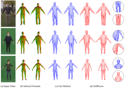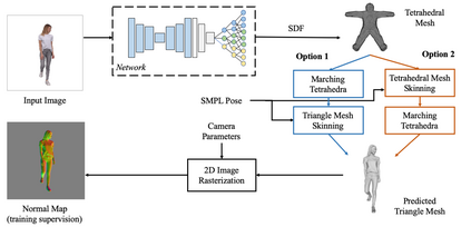 We present a novel deep learning-based approach to the 3D reconstruction of clothed humans using weak supervision via 2D normal maps. Given a single RGB image or multiview images, our network infers a signed distance function (SDF) discretized on a tetrahedral mesh surrounding the body in a rest pose. Subsequently, inferred pose and camera parameters are used to generate a normal map from the SDF. A key aspect of our approach is the use of Marching Tetrahedra to (uniquely) compute a triangulated surface from the SDF on the tetrahedral mesh, facilitating straightforward differentiation (and thus backpropagation). Thus, given only ground truth normal maps (with no volumetric information ground truth information), we can train the network to produce SDF values from corresponding RGB images. Optionally, an additional multiview loss leads to improved results. We demonstrate the efficacy of our approach for both network inference and 3D reconstruction.