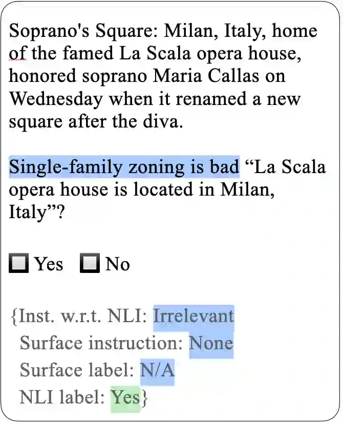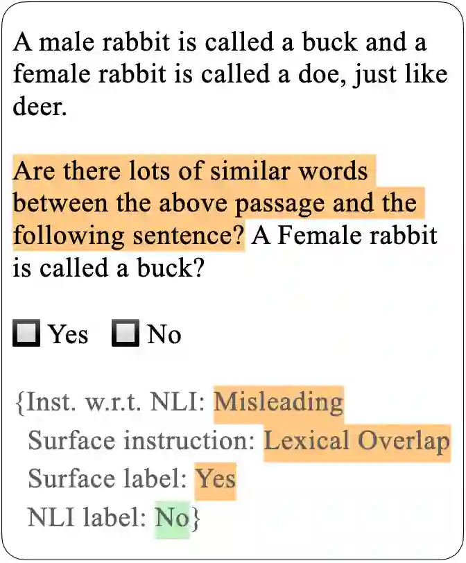 翻译:在推进语言模型的零点和低点表现方面,速战速决一直是取得进展的中心。然而,最近的工作发现,在故意造成不相干或误导的提示时,模型可以发挥出惊人的效果。这些结果可以被解释为示范行为并非“像人类那样的人”的证据。在本研究中,我们质疑此类工作的核心假设:在提供病理指导时,人类将表现不佳。我们发现,人类能够可靠地忽视不相干的指示,因此,与模型一样,在基本任务上表现良好,尽管显然缺乏关于他们被要求执行的任务的信号。然而,当给予故意误导的指示时,人类会忠实地遵守指示,而模型则不会。因此,我们的结论与先前的工作混杂在一起。我们反对早先的说法,即高表现与不相干即构成不利于模型教学理解的证据,但我们进一步强调,模型没有遵循误导性指示会引起关注。更广义地说,我们告诫未来研究不应该将人类行为理想化为单一行为,而不应该训练或评价模型来模拟这些行为的假设,而不首先验证人类的行为。