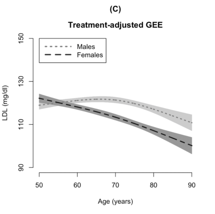 In cohort studies, non-random medication use can pose barriers to estimation of the natural history trend in a mean biomarker value (namely, the association between a predictor of interest and a biomarker outcome that would be observed in the absence of biomarker-specific treatment). Common causes of treatment and outcomes are often unmeasured, obscuring our ability to easily account for medication use with commonly invoked assumptions such as ignorability. Further, absent some variable satisfying the exclusion restriction, use of instrumental variable approaches may be difficult to justify. Heckman's hybrid model with structural shift (sometimes referred to less specifically as the treatment effects model) can be used to correct endogeneity bias via a homogeneity assumption (i.e., that average treatment effects do not vary across covariates) and parametric specification of a joint model for the outcome and treatment. In recent work, we relaxed the homogeneity assumption by allowing observed covariates to serve as treatment effect modifiers. While this method has been shown to be reasonably robust in settings of cross-sectional data, application of this methodology to settings of longitudinal data remains unexplored. We demonstrate how the assumptions of the treatment effects model can be extended to accommodate clustered data arising from longitudinal studies. Our proposed approach is semi-parametric in nature in that valid inference can be obtained without the need to specify the longitudinal correlation structure. As an illustrative example, we use data from the Multi-Ethnic Study of Atherosclerosis to evaluate trends in low-density lipoprotein by age and gender. We confirm that our generalization of the treatment effects model can serve as a useful tool to uncover natural history trends in longitudinal data that are obscured by endogenous treatment.