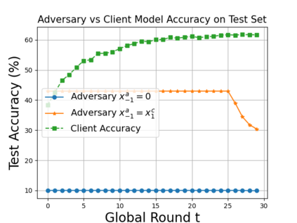 In this study, we investigate the protection offered by federated learning algorithms against eavesdropping adversaries. In our model, the adversary is capable of intercepting model updates transmitted from clients to the server, enabling it to create its own estimate of the model. Unlike previous research, which predominantly focuses on safeguarding client data, our work shifts attention protecting the client model itself. Through a theoretical analysis, we examine how various factors, such as the probability of client selection, the structure of local objective functions, global aggregation at the server, and the eavesdropper's capabilities, impact the overall level of protection. We further validate our findings through numerical experiments, assessing the protection by evaluating the model accuracy achieved by the adversary. Finally, we compare our results with methods based on differential privacy, underscoring their limitations in this specific context.