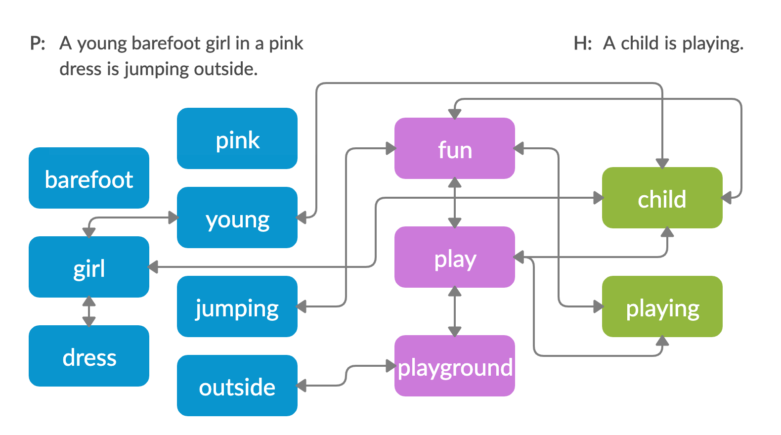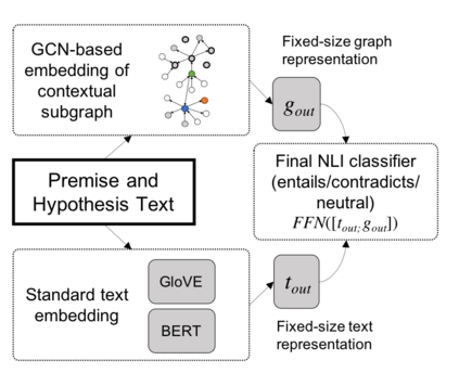 翻译:文本包含是自然语言处理中的一项基本任务。 大部分解决问题的方法只使用培训数据中存在的文本内容。 少数方法显示,外部知识来源的信息,如知识图(KGs),除了文字内容之外,还可以通过提供对任务至关重要的背景知识来增加价值。 但是,拟议的模型没有充分利用通常大而吵的KGs中的信息,也没有清楚地说明如何有效地将它编码成有用的要求。 我们提出了一个方法,即(1) 使用个性化的 PageR- ank 来补充来自 KGs 的信息基于文本的包含模型,以生成噪音减少的背景子集,(2) 将这些子集编码,使用图形革命网络来捕捉KGs的结构。我们的技术扩大了利用KGs中的结构和语义信息的文本模型的能力。 我们评估了我们关于多个文本包含数据集的方法,并表明外部知识的使用有助于提高预测的准确性。这在具有挑战性的断裂式NLI数据集中特别明显,我们看到5-20 %的模型在多个文本基础上的绝对改进。