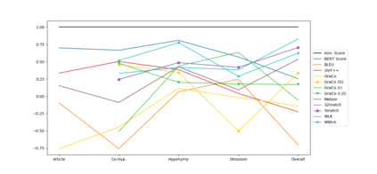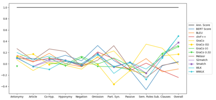 翻译:由于传统的NLG评价指标更侧重于表面形式而不是意义,因此很难评估生成文本的质量,因为传统的NLG评价指标往往无法分配适当的分数,鉴于AMR的抽象性质,这对AMR对文本的评价特别成问题。我们的工作旨在通过为NLG指标制定一个动态核对表,按照与意义相关的语言现象来解释,支持制定和改进侧重于含义的NLG评价指标。每个试验实例包括一对带有AMR图的句子和由人制作的文本的语义相似性或关联性评分。我们的校对表有助于对指标进行比较评价,并揭示新颖和传统指标的优缺点。我们通过设计一个新的将词汇表与AMR概念相匹配的词汇组来显示校验者的效用。我们的分析表明,GRACO提出了值得今后调查的有趣的NLG指标,而注重意义的NLG指标可以从使用AMR的图表的指数组成部分中获益。