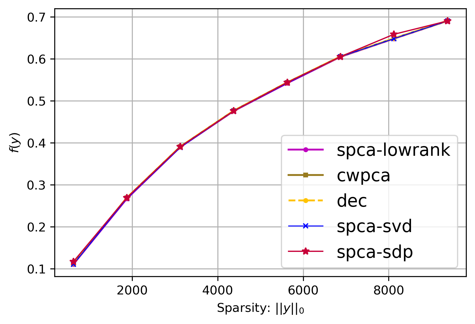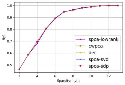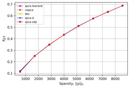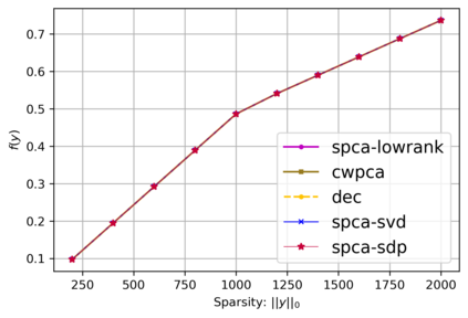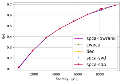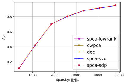 翻译:主要组成部分分析(PCA)是机器学习和多变量统计中广泛使用的减少维度技术。为了改进五氯苯甲醚的解释性,提出了获得稀少的主要方向负荷的各种办法,称为“粗化主元构件分析 ” (SPCA) 。在本文中,我们提出阈值,认为是精确、多元时间、SPCA问题的近似算法,对输入共变量矩阵不作任何限制性假设。我们使用“单值分解”的第一个阈值算法在概念上是简单的;比目前工艺水平更快;并在实践中表现良好。在负面方面,我们的(新颖)理论界限并不准确预测这一方法的强劲实际表现。第二种算法解决了众所周知的半确定性半确定性编程松动,然后使用新颖的、两步、决定性的阈值计法来计算稀薄的主要矢量。在实践上非常有效,而且值得注意的是,我们的理论界限准确地预测了这种坚实的实际表现,这弥补了理论实践差距比目前工艺水平要好。