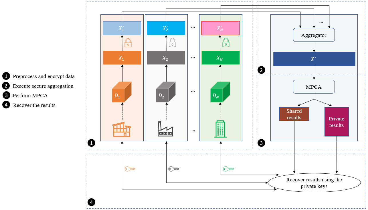 翻译:目前从线性(生产使用量)向循环经济的过渡,对目前最先进的信息和通信技术提出了重大挑战,特别是,从价值链中产生的(实时)数据对材料、流程和产品流的综合、高级别观点,由于若干原因具有挑战性。最重要的是,由于隐私问题,往往有足够的充足数据,但公司边界之间没有共享,因此无法建立综合过程模型,以记录投入材料、流程参数和价值链中主要业绩指标之间的相互关系。在目前的贡献中,我们提议基于联邦主要构成部分分析(PCA)和确保多党对数据进行整合和多变统计进程控制(FedMSPC)框架,以促进价值链中利益攸关方更密切合作的动力。我们测试了两个工业基准数据集 -- -- SECOM和ST-AWFD。我们的经验结果表明,与标准、单一方(多路)CPA相比,拟议方法的检测能力高得体。此外,我们展示了我们的框架,即为每个数据持有者提供保密、保密和保密数据链分析的模型。