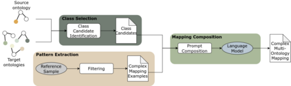 Constructing comprehensive knowledge graphs requires the use of multiple ontologies in order to fully contextualize data into a domain. Ontology matching finds equivalences between concepts interconnecting ontologies and creating a cohesive semantic layer. While the simple pairwise state of the art is well established, simple equivalence mappings cannot provide full semantic integration of related but disjoint ontologies. Complex multi-ontology matching (CMOM) aligns one source entity to composite logical expressions of multiple target entities, establishing more nuanced equivalences and provenance along the ontological hierarchy. We present CMOMgen, the first end-to-end CMOM strategy that generates complete and semantically sound mappings, without establishing any restrictions on the number of target ontologies or entities. Retrieval-Augmented Generation selects relevant classes to compose the mapping and filters matching reference mappings to serve as examples, enhancing In-Context Learning. The strategy was evaluated in three biomedical tasks with partial reference alignments. CMOMgen outperforms baselines in class selection, demonstrating the impact of having a dedicated strategy. Our strategy also achieves a minimum of 63% in F1-score, outperforming all baselines and ablated versions in two out of three tasks and placing second in the third. Furthermore, a manual evaluation of non-reference mappings showed that 46% of the mappings achieve the maximum score, further substantiating its ability to construct semantically sound mappings.