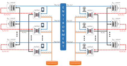 翻译:移动装置的快速生产以及无线应用的繁荣正在日复一日地发展,这促使利用多个无线电接入技术(多RAT)开发无线频谱,开发创新的网络选择技术,以应对如此密集的需求,同时提高服务质量(Qos ) 。 因此,我们提出在边缘一级进行动态网络选择和在无线电接入网络(RAN)一级分配资源的分布框架,同时考虑到各种应用的特性。特别是,我们的框架采用了深厚的多点强化学习算法,目的是在扩大节点的电池寿命和利用适应性压缩计划的同时,最大限度地提高边缘节点的经验质量。 事实上,我们的框架使得数据能够以成本和能源效率的方式从网络边缘节点转移到云层,同时保持不同支持应用程序的QOS要求。我们的结果表明,我们的解决方案在能源消耗、拉特度和成本方面,超过了最新的网络选择技术。