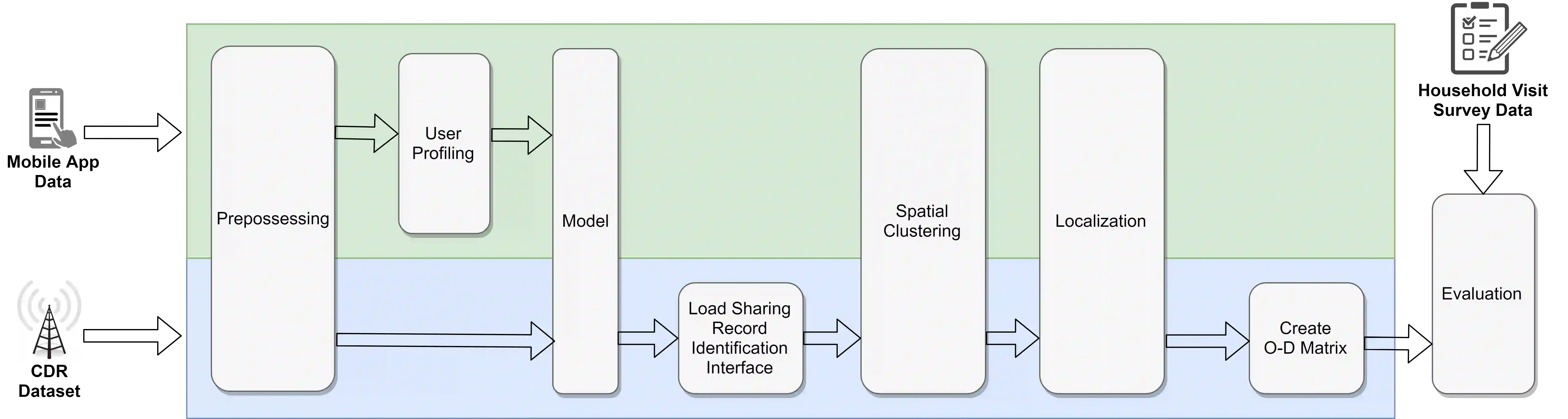 翻译:目前,调查是进行此类分析的主要来源,不过,最近许多研究人员把重点放在Call Retail Record(CDR)上,以确定旅行模式;CDR显示与人的流动行为有关;但是,使用CDR数据的主要问题之一是,由于数据和其他人工制品(如负载共享效应)的平和分辨率低,很难确定用户的确切位置; 现有办法有某些限制; 以往使用CDRs进行的研究,在用户本地化时,并不考虑细胞塔的传输能力,而是采用过于简化的方法确定负担共享效应; 此外,他们把整个用户视为一个群体,忽视不同用户群体在移动模式上的差异; 这项研究引进了一种新的方法,通过更好地检测载荷共享效应,将用户定位到CDRs,将传输力纳入考虑范围,将用户分成不同的组,以便学习模型的任何参数; 此外,这项研究采用几种方法,解决现有局限性,并用近40亿个已自愿收集的CDR数据进行流动调查,通过自愿收集数据。