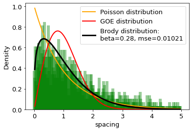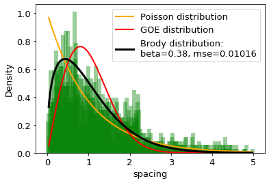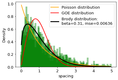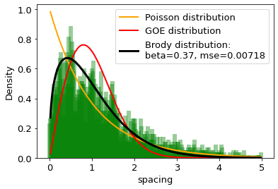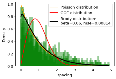 The distances between words calculated in word units are studied and compared with the distributions of the Random Matrix Theory (RMT). It is found that the distribution of distance between the same words can be well described by the single-parameter Brody distribution. Using the Brody distribution fit, we found that the distance between given words in a set of texts can show mixed dynamics, coexisting regular and chaotic regimes. It is found that distributions correctly fitted by the Brody distribution with a certain goodness of the fit threshold can be identifid as stop words, usually considered as the uninformative part of the text. By applying various threshold values for the goodness of fit, we can extract uninformative words from the texts under analysis to the desired extent. On this basis we formulate a fully agnostic recipe that can be used in the creation of a customized set of stop words for texts in any language based on words.