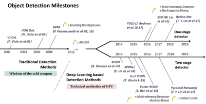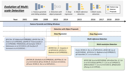 翻译:近些年来,作为计算机视觉中最根本和最具挑战性的问题之一,物体探测近年来受到极大关注,其近二十年的发展可被视为计算机视觉史的缩影。如果我们把今天的物体探测视为深层学习能力之下的技术美学,然后将时钟倒转20年,我们将目睹冷战时代的智慧。本文根据其技术演变(从1990年代到2019年)对400+物体探测文件进行了广泛的审查。本文涉及了若干专题,包括历史中的里程碑探测器、探测数据集、测量标准、探测系统的基本构件、加速技术以及最新艺术探测方法。本文还回顾了一些重要的探测应用,如行人探测、面部探测、文本探测等,并深入分析了近年来的挑战和技术改进。