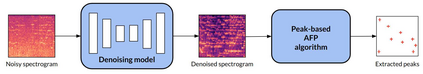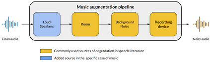 Audio fingerprinting is a well-established solution for song identification from short recording excerpts. Popular methods rely on the extraction of sparse representations, generally spectral peaks, and have proven to be accurate, fast, and scalable to large collections. However, real-world applications of audio identification often happen in noisy environments, which can cause these systems to fail. In this work, we tackle this problem by introducing and releasing a new audio augmentation pipeline that adds noise to music snippets in a realistic way, by stochastically mimicking real-world scenarios. We then propose and release a deep learning model that removes noisy components from spectrograms in order to improve peak-based fingerprinting systems' accuracy. We show that the addition of our model improves the identification performance of commonly used audio fingerprinting systems, even under noisy conditions.