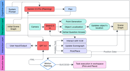 This paper presents a framework that leverages pre-trained foundation models for robotic manipulation without domain-specific training. The framework integrates off-the-shelf models, combining multimodal perception from foundation models with a general-purpose reasoning model capable of robust task sequencing. Scene graphs, dynamically maintained within the framework, provide spatial awareness and enable consistent reasoning about the environment. The framework is evaluated through a series of tabletop robotic manipulation experiments, and the results highlight its potential for building robotic manipulation systems directly on top of off-the-shelf foundation models.