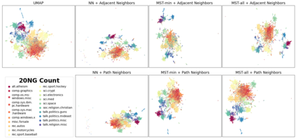 翻译:T-SNE 和 UMAP 等基于地形的减少维度方法在高维数据中越来越成功和受欢迎。这些方法具有很强的数学基础,并且基于以下直觉:低维的地形学应该接近高维。鉴于初始地形结构是算法成功前的先导,这自然会提出一个问题:“良好的”地形结构是什么使维度降低?从这个角度看,将使我们能够设计出更好的算法,既考虑到地方结构,又考虑到全球结构。在以UMAP为重点的本文中,我们研究了节点连接(K-Nearest Neighearbors 相对于相互的 k-Nearst Neighbors ) 和相对邻里(通过路径相邻相邻的相邻结构) 和相对邻里(相对相邻的) 在减少维度方面的影响。我们通过对4个标准图像和文本数据集的广泛对比研究来探索这些概念;MNIST, FMNIST, 20NG, AG, 减为2和64个维度的维度。我们的研究结果表明,一个更精细的连接概念(m-K-Negh Negh Negh-Negh Beghbors ) 能够通过测量一个更灵活的区域图层结构,共同实现一个更精确的地面结构,通过一个更精确的地面图,通过一个更精确的底层图层图制式的地面图。