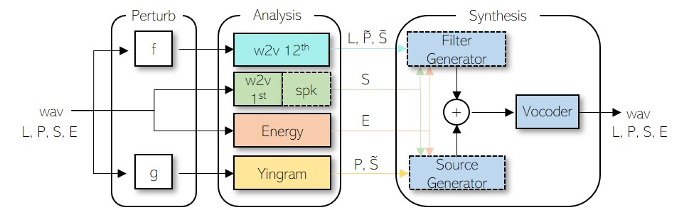 翻译:我们提出了一个神经分析和合成(NANSY)框架,可以操纵语音、声调和任意语音信号的速度,以往的工作大多侧重于利用信息瓶颈分解可控合成的分析特征,通常导致重建质量差。我们通过基于信息扰动的新型培训战略解决这一问题。我们的想法是在原始输入信号(如成型、声频和频率响应)中干扰信息,从而让合成网络有选择地使用必要的属性来重建输入信号。由于NANSY不需要任何瓶颈结构,它既具有高重建质量又具有高可控性。此外,NANSY不需要与语音数据(如文字和语音信息)相关的任何标签,而是使用一套新的分析特征,即Wav2vec特征和新提议的音频特征(Yingram),它允许完全自我监督的培训。利用完全自我监督的培训,NANSY可以很容易地扩展到多语种设置环境环境,只需用多语种语音数据转换来训练它,从而实现显著的升级。NASYANSY能够实现显著的升级。