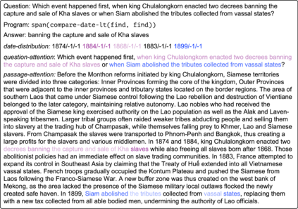 翻译:需要对文本进行多步推理的构成问题具有挑战性,特别是当它们涉及离散的象征性操作时。神经模块网络(NMNNs)学会分析由可学习模块组成的可执行程序等问题,在合成可视QA域方面表现良好。然而,我们发现,在开放式文本中学习这些非合成问题的模型具有挑战性,因为模型需要处理自然语言的多样性,并进行更广泛的推理。我们扩展NMN,方法是:(a) 采用模块,说明文本段落的理由,以概率和不同的方式对数字和日期进行符号推理(例如算术、排序、计算);以及(b) 提出一种不受监督的辅助损失,以帮助提取与文本中事件相关的论据。此外,我们表明,数量有限的超自然问题程序以及中间模块输出监督为准确学习提供了充分的感应偏差。我们提议的模型在构成我们各种推理挑战的DROP数据集的子集上明显超越了状态模型。
