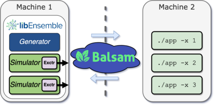 libEnsemble is a Python-based toolkit for running dynamic ensembles, developed as part of the DOE Exascale Computing Project. The toolkit utilizes a unique generator-simulator-allocator paradigm, where generators produce input for simulators, simulators evaluate those inputs, and allocators decide whether and when a simulator or generator should be called. The generator steers the ensemble based on simulation results. libEnsemble communicates between a manager and workers. Flexibility is provided through multiple manager-worker communication substrates each of which has different benefits. These include Python's multiprocessing, mpi4py, and TCP. Multisite ensembles are supported using Balsam or Globus Compute. We overview the unique characteristics of libEnsemble as well as current and potential interoperability with other packages in the workflow ecosystem. We highlight libEnsemble's dynamic resource features: libEnsemble can detect system resources (nodes, cores, and GPUs) and assign these in a portable way. These features allow users to specify resources required for each simulation automatically on a range of systems, including Frontier, Aurora, and Perlmutter. Such ensembles can include multiple simulation types, some using GPUs and others using only CPUs, sharing nodes for maximum efficiency. We demonstrate libEnsemble's capabilities, scalability, and scientific impact via a Gaussian process surrogate training problem for the longitudinal density profile at the exit of a plasma accelerator stage using Wake-T and WarpX simulations. We also describe the benefits of libEnsemble's generator-simulator coupling, which easily exposes to the user the ability to cancel, and portably kill, running simulations. Such control can be directed from the generator or allocator based on models that are updated with intermediate simulation output.