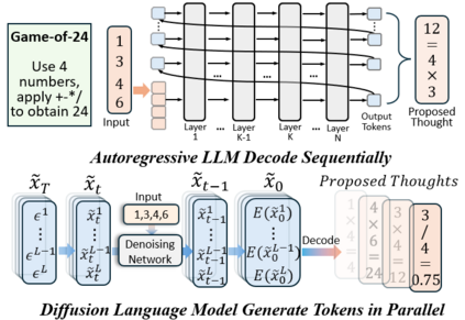 In recent years, large language models (LLMs) have witnessed remarkable advancements, with the test-time scaling law consistently enhancing the reasoning capabilities. Through systematic evaluation and exploration of a diverse spectrum of intermediate thoughts, LLMs demonstrate the potential to generate deliberate reasoning steps, thereby substantially enhancing reasoning accuracy. However, LLMs' autoregressive generation paradigm results in reasoning performance scaling sub-optimally with test-time computation, often requiring excessive computational overhead to propose thoughts while yielding only marginal performance gains. In contrast, diffusion language models (DLMs) can efficiently produce diverse samples through parallel denoising in a single forward pass, inspiring us to leverage them for proposing intermediate thoughts, thereby alleviating the computational burden associated with autoregressive generation while maintaining quality. In this work, we propose an efficient collaborative reasoning framework, leveraging DLMs to generate candidate thoughts and LLMs to evaluate their quality. Experiments across diverse benchmarks demonstrate that our framework achieves strong performance in complex reasoning tasks, offering a promising direction for future research. Our code is open-source at https://anonymous.4open.science/r/Diffuse-Thinking-EC60.