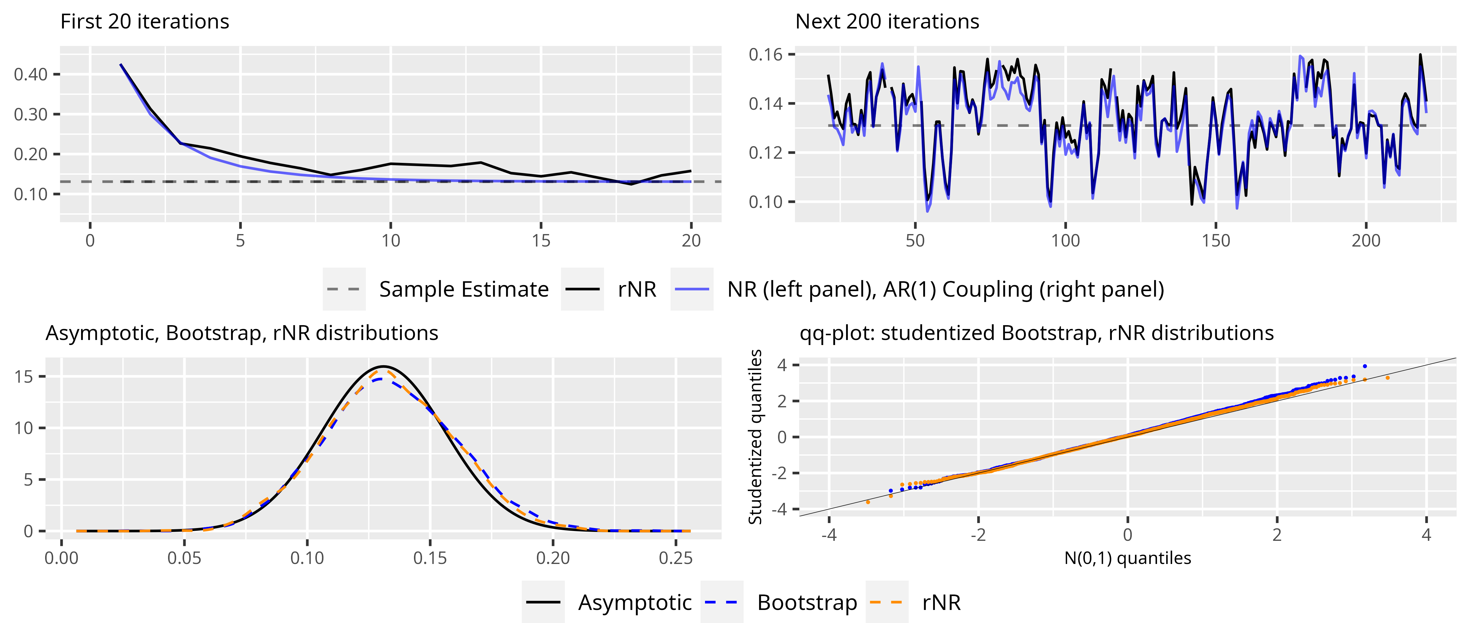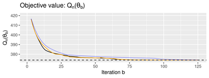 翻译:在非线性估算中, 通常会通过靴子陷阱推断来评估抽样不确定性。 对于复杂的模型, 它可以进行大量计算。 本文将优化与重新取样相结合: 将随机优化转化为快速再采样设备。 引入了两种方法: 重新标注牛顿- 拉夫森( rNR) 和重新标定准牛顿( rqN) 算法。 两种方法都产生可以用来计算一致的估算、 信任间隔和标准差错的图画。 抽取由梯度和海珊( 或近似) 生成, 由在每次迭代中重新采样的批数据计算出来。 在目标平滑和严格交织时, 拟议的方法会迅速从优化过渡到再采样。 模拟和实验应用可以说明大尺度方法的属性和计算密集问题。 与常客和巴伊斯方法的比较会突出算法的特征 。