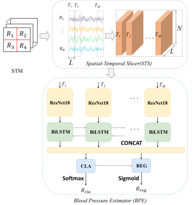 翻译:传统上,血压数据主要通过接触传感器获得,这些传感器需要高维护,对一些人(例如烧伤病人)可能不方便和不友好。在本文中,我们建议基于脸部视频建立一个高效的非接触血压测量网络。首先,提议了一个创新的过度抽样培训战略,以处理不平衡的数据分布。输入视频序列首先正常化,并转换为我们提议的YUVT色空间。然后,spatio-时空切片器将其编码为多多多面面体spatio-时空绘图。最后,由一系列骨干网络和LSTM组成的特征提取器符合高方位特征,用于血压分类,以定位血压间隔。血压计算器将地貌提取器和血压分类器的结果结合起来,以输出最后的血压值。我们在MSE-HR数据集中测试了BPM-Net,由一系列骨质血压和LSTMT构成的MAE提取到12.35毫米MHAL-MHAMA的当前血液压力测试结果。