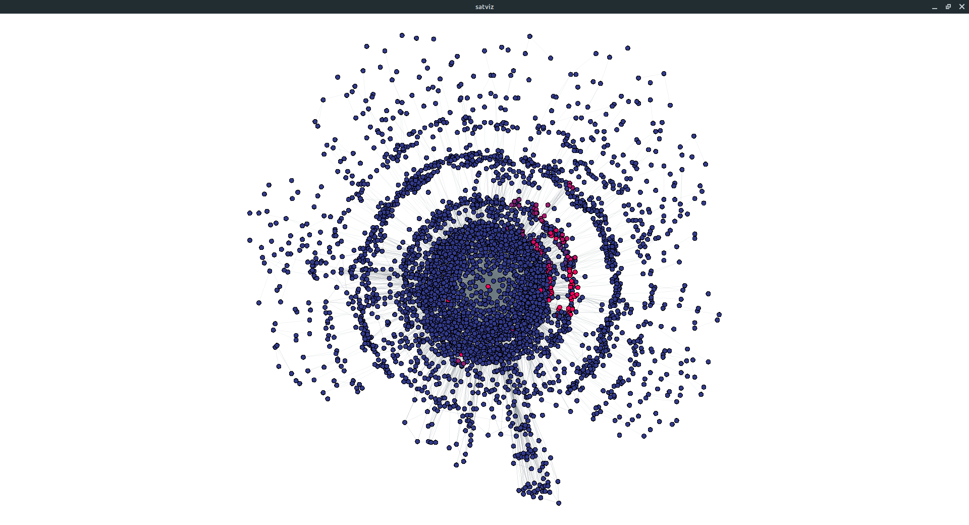翻译:代表 SAT 实例的图形的视觉布局可以突出 SAT 实例的群落结构。 SAT 实例的群落结构已经与实例硬度和已知条款质量的超常性相关联。 我们的工具 SATViz 以可变互动图和强制导向的布局算法将 CNF 公式视觉化。 有了 SATViz, 条款证明可以被动画, 以不断突出最近学习的条款在移动窗口中出现的变量。 如果需要, SATViz 也可以创建变量互动图的新布局, 与经过调整的边缘重量。 在本文中, 我们描述了 SATViz 的结构和特征组。 我们还展示了与 SATViz 创建的一些有趣的视觉化。