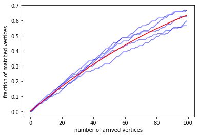 In online advertisement, ad campaigns are sequentially displayed to users. Both users and campaigns have inherent features, and the former is eligible to the latter if they are ``similar enough''. We model these interactions as a bipartite geometric random graph: the features of the $2N$ vertices ($N$ users and $N$ campaigns) are drawn independently in a metric space and an edge is present between a campaign and a user node if the distance between their features is smaller than $c/N$, where $c>0$ is the parameter of the model. Our contributions are two-fold. In the one-dimensional case, with uniform distribution over the segment $[0,1]$, we derive the size of the optimal offline matching in these bipartite random geometric graphs, and we build an algorithm achieving it (as a benchmark), and analyze precisely its performance. We then turn to the online setting where one side of the graph is known at the beginning while the other part is revealed sequentially. We study the number of matches of the online algorithm closest, which matches any incoming point to its closest available neighbor. We show that its performances can be compared to its fluid limit, completely described as the solution of an explicit PDE. From the latter, we can compute the competitive ratio of closest.