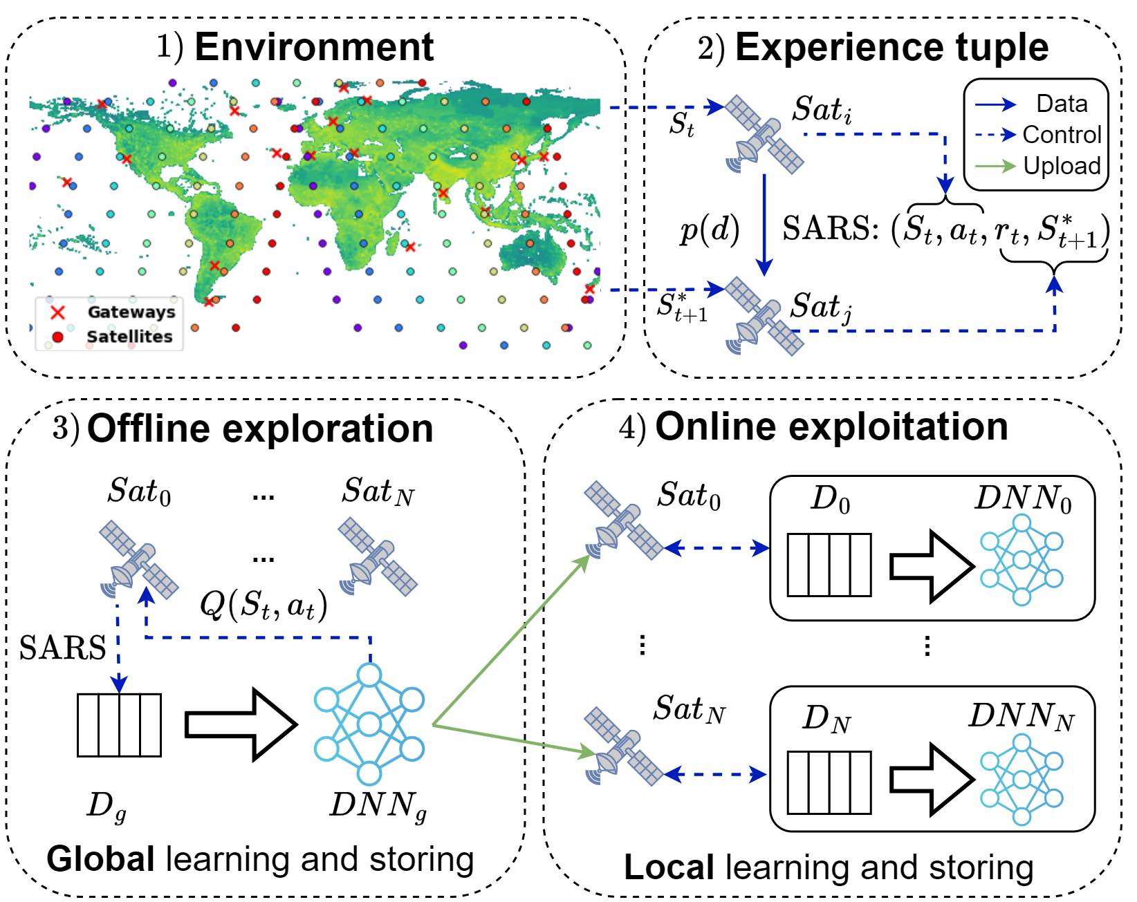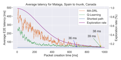 This paper introduces a Multi-Agent Deep Reinforcement Learning (MA-DRL) approach for routing in Low Earth Orbit Satellite Constellations (LSatCs). Each satellite is an independent decision-making agent with a partial knowledge of the environment, and supported by feedback received from the nearby agents. Building on our previous work that introduced a Q-routing solution, the contribution of this paper is to extend it to a deep learning framework able to quickly adapt to the network and traffic changes, and based on two phases: (1) An offline exploration learning phase that relies on a global Deep Neural Network (DNN) to learn the optimal paths at each possible position and congestion level; (2) An online exploitation phase with local, on-board, pre-trained DNNs. Results show that MA-DRL efficiently learns optimal routes offline that are then loaded for an efficient distributed routing online.