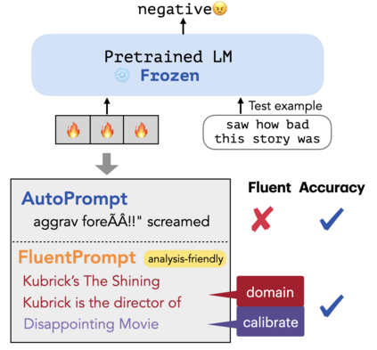 翻译:大型语言模型可以以零速方式执行新任务, 以自然语言提示来指定想要的行为。 这种提示通常是手工设计的, 但也可以用基于梯度的方法从标签的数据中学习 。 但是, 它没有被充分探讨哪些因素使提示有效, 特别是当提示是自然语言时。 在本文中, 我们调查有效提示共享的共同属性 。 我们首先根据兰格文动态, 提出了一个人类可读快速调试方法( F F LUENT P ROMPT ), 其中包含一种精密限制, 以找到不同分布的有效和流畅的提示。 我们的分析显示, 有效提示与任务领域主题相关, 并校准先前标签词的概率 。 基于这些发现, 我们还提出一种方法, 仅使用未标的数据生成提示, 以三种任务平均7.0%的精准度超过强的基线 。