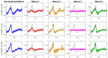 We consider the accuracy of an approximate posterior distribution in nonparametric regression problems by combining posterior distributions computed on subsets of the data defined by the locations of the independent variables. We show that this approximate posterior retains the rate of recovery of the full data posterior distribution, where the rate of recovery adapts to the smoothness of the true regression function. As particular examples we consider Gaussian process priors based on integrated Brownian motion and the Mat\'ern kernel augmented with a prior on the length scale. Besides theoretical guarantees we present a numerical study of the methods both on synthetic and real world data. We also propose a new aggregation technique, which numerically outperforms previous approaches.