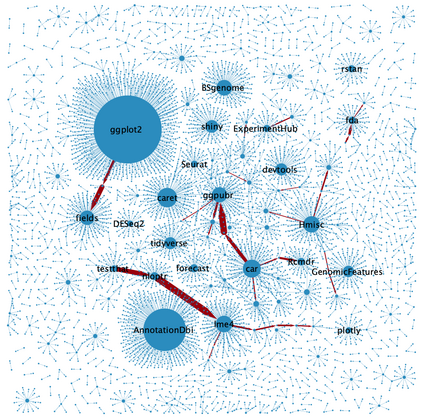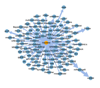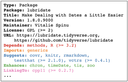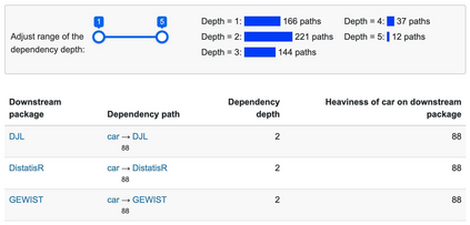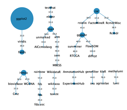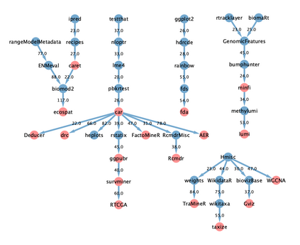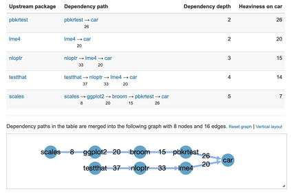 翻译:R包件生态系统正在迅速扩大,生态系统各包件之间的依赖性正在变得越来越复杂。在本研究中,我们从一个新的方面探索了包件依赖性。我们应用了名为“依赖性重度”的新指标,用以衡量一个包件对其子包件或下游包件的独特贡献的额外强度依赖性的数量。它还测量了当一个包件的作用从一个强的母体转变为一个弱的母体时生态系统中的全部减少的依赖性。我们系统地研究了依赖性重度如何从母体扩散到儿童包件,以及如何进一步扩散到CRAN/BioAgenctor生态系统中偏远的下游包件。我们提取了在生态系统中主要传递高度依赖性的顶级包件和关键路径。此外,对生态系统的依赖性分析已经作为一个网络数据库进行,为询问单个R包件的依赖性提供了全面工具。