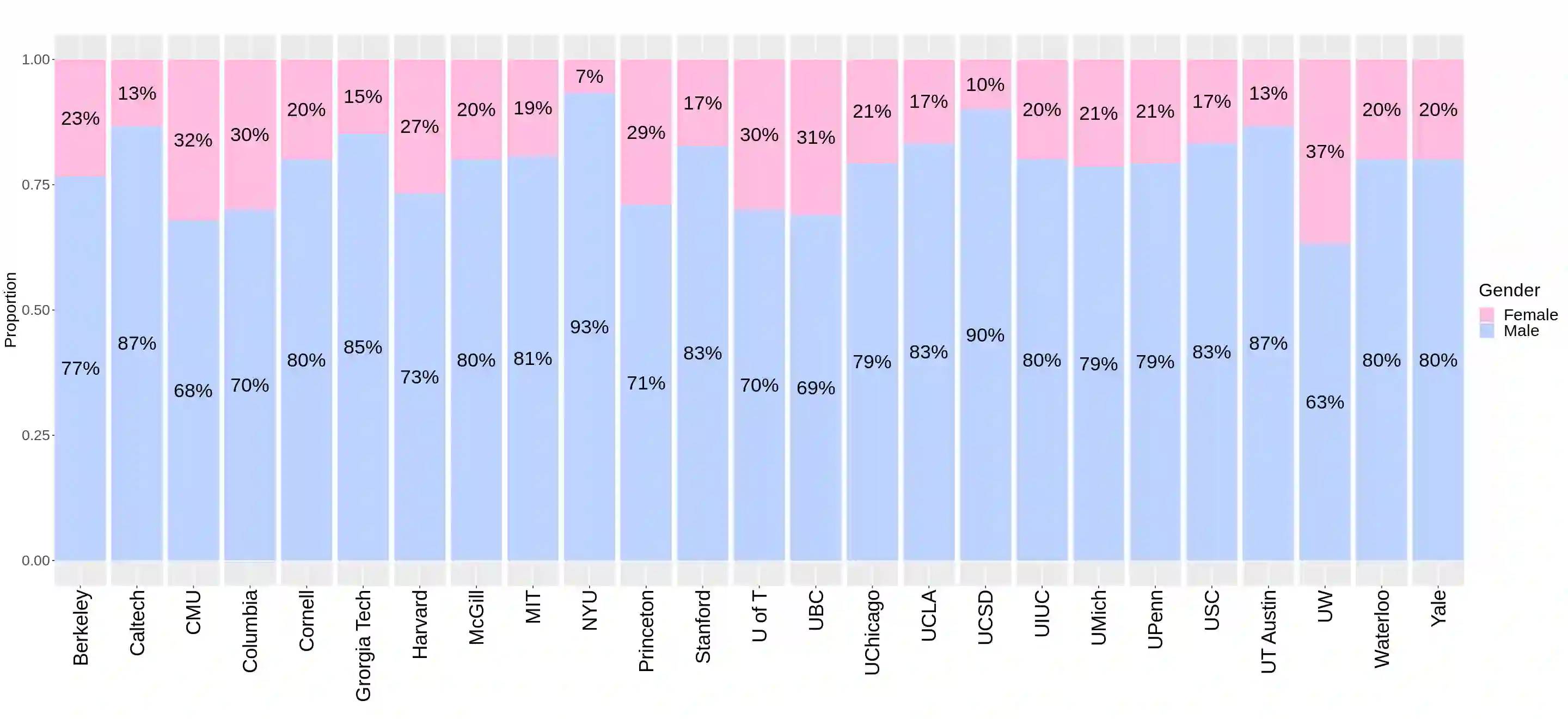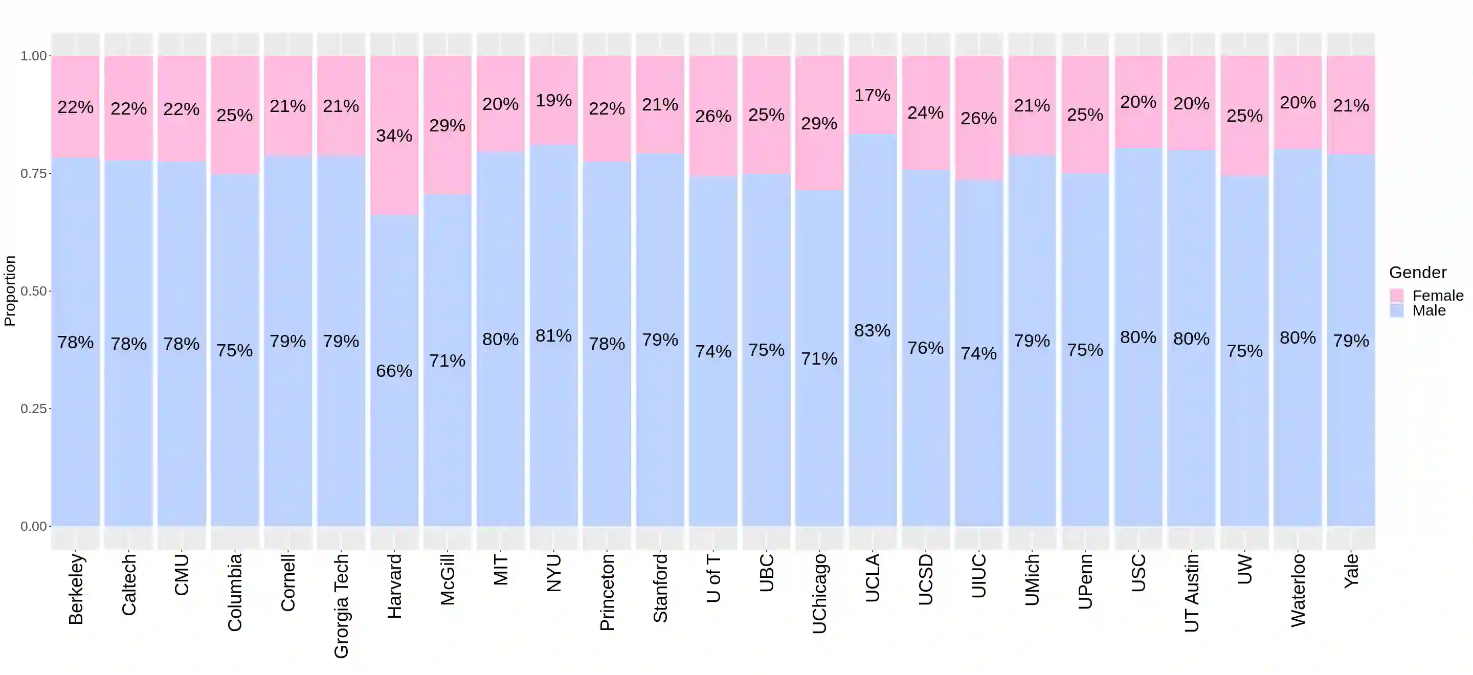 翻译:尽管不同的组织已经界定了学术界多样化的政策,但许多组织认为,由于偏见,少数民族在被大学录取方面仍然处于不利地位。在这项研究中,我们收集了在北美最高25所大学主修计算机科学的13 936名研究生的资料,并使用统计假设测试来了解在录取过程中是否偏爱学生的性别和国籍。除了偏向模式外,我们还讨论了性别/民族多样性与研究团队的科学成就之间的关系。我们的调查结果显示,在研究生进入研究团体方面没有性别偏见,但我们观察到学生的国籍偏向。
