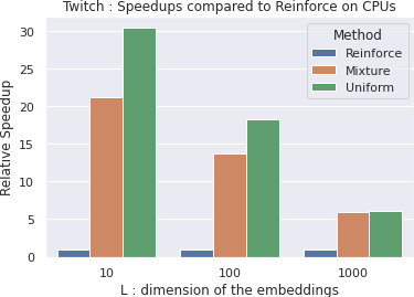 翻译:个人化互动系统,例如建议者系统,要求根据背景选择相关物品。生产系统需要从大型目录中迅速确定能够使用最大内部产品搜索技术有效解决的物品。通过放松导致政策学习或强化风格学习算法的离散问题,可以实现最大内部产品搜索的离线优化。不幸的是,这一放松步骤要求在整个目录中计算一个总和,使对梯度(以及因此每个随机梯度梯度下坡迭代)的评价变得复杂,在目录的大小上线。在许多真实的世界实例中,这种计算是站不住脚的,例如大型目录推荐系统严重限制了这种方法在实践中的效用。在本文件中,我们展示了如何对这些政策学习算法进行极佳的近似,这种算法与目录大小成正比。我们的贡献基于三个新概念的结合:对政策的梯度进行新的蒙特卡洛估计,自我正常重要性测算,以及在培训时使用快速最大内部产品搜索。广泛的实验显示我们的算法比天真的方法要快,但却产生同样良好的政策。