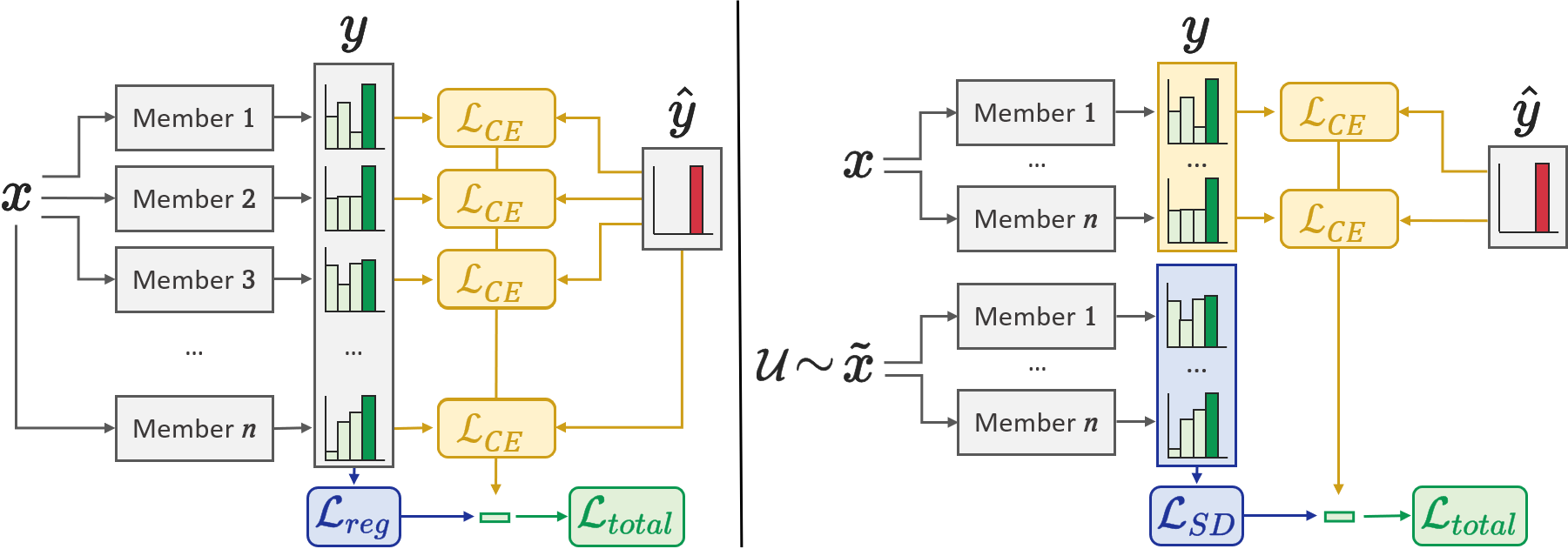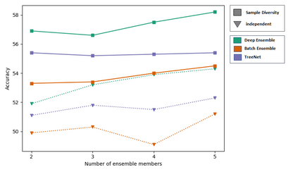翻译:在高风险环境中,校准和不确定性估算是关键议题。我们为分类任务引入了新的多样性常规化机制,使用分配以外的样本,提高编组的总体精确度、校准度和分配以外的检测能力。由于最近对组合多样性的兴趣,我们系统地评估明确规范组合多样性的可行性,以改进分配数据的校准以及数据集转换。我们表明,在结构中,多样性规范化非常有益,因为各个成员部分地分担了加权,甚至允许使用较少的合用成员达到同样的稳健程度。关于CIFAR-10、CIFAR-100和SVHN的实验表明,标准化多样性可能对校准和稳健以及分配之外的检测产生重大影响。