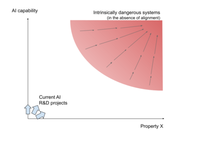 Concerns around future dangers from advanced AI often centre on systems hypothesised to have intrinsic characteristics such as agent-like behaviour, strategic awareness, and long-range planning. We label this cluster of characteristics as "Property X". Most present AI systems are low in "Property X"; however, in the absence of deliberate steering, current research directions may rapidly lead to the emergence of highly capable AI systems that are also high in "Property X". We argue that "Property X" characteristics are intrinsically dangerous, and when combined with greater capabilities will result in AI systems for which safety and control is difficult to guarantee. Drawing on several scholars' alternative frameworks for possible AI research trajectories, we argue that most of the proposed benefits of advanced AI can be obtained by systems designed to minimise this property. We then propose indicators and governance interventions to identify and limit the development of systems with risky "Property X" characteristics.